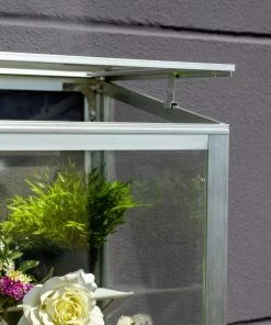 Die perfekte Bereicherung auf dem Stadtbalkon: Mit gerade 0,35 m² fügt sich das Balkongewächshaus Stad harmonisch selbst auf kleineren Balkonen ein. Geschützt und ökologischer als jedes gekaufte Gemüse können Tomaten und Kräuter hier angebaut und direkt verzehrt oder zum Kochen verwendet werden. Vollendete Verarbeitung wie der geschlossene Boden, die leicht und getrennt voneinander bedienbaren Schiebetüren und das zusätzliche Regal machen es dabei nicht nur schön, sondern auch mühelos bedienbar. Das Gewächshaus hat eine Gesamthöhe von 1,60m. Das Zwischenregal unterteilt die Höhe in ein ca. 40 cm hohes unteres und ein ca. 1 m hohes oberes Fach. Das Zwischenregal besteht aus einzeln entnehmbaren Streben erlauben das Wachstum hochwachsender Pflanzen über die gesamte Höhe des Gewächshauses. Verglast mit kristallklarem Sicherheitsglas (ESG), klammerfrei eingefasst in filigrane und gleichzeitig robuste Alu-Profile, fehlt dem Mini-Gewächshaus nur noch ein wenig Grün, um ihren Balkon geradezu zu schmücken.