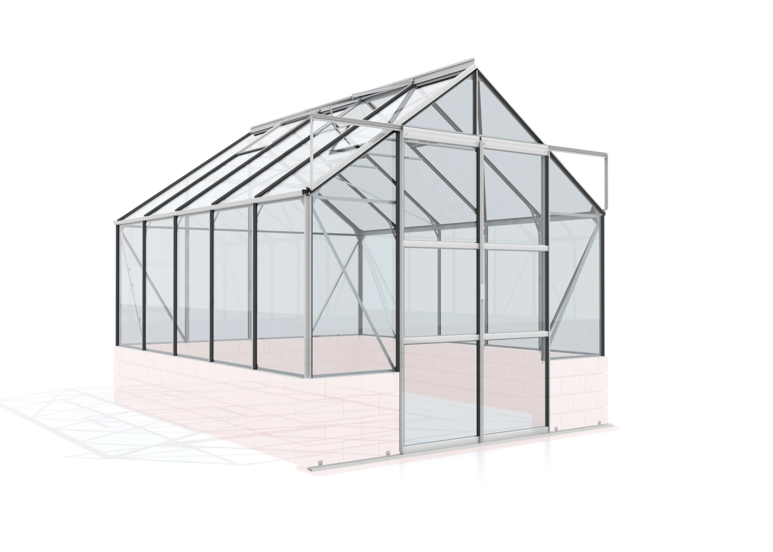 So wohnlich kann es im Grünen sein: Auf einem soliden Sockel stehend wird Ihr Gewächshaus schnell zum zweiten Zuhause und bringt dabei ein wenig englischen Stil in Ihren Garten. Das Cassandra hebt sich durch einen gemauerten Sockel vom klassischen, vollverglasten Gewächshaus ab: Der diskrete Sichtschutz, das freundliche Klima und die solide Gesamterscheinung verleihen dem Gewächshaus eine hohe Wohnlichkeit für viele gemütliche Stunden im eigenen Grün. Der Sockel kann mitbestellt oder nach eigenen Wünschen gestaltet werden. Das Set besteht aus dem Gewächshaus sowie den TÜV zertifizierten, aus Beton gegossenen Werksteinen für den Sockelbausatz. Die Steine bilden ein wertiges Mauerbild und haben zudem eine sehr hohe Farbbeständigkeit. Durch den “Pearl-Effekt-3” perlen Schmutz und Wasser von ihnen einfach ab. Auch die Pflanzen werden sich im Modell Cassandra wohlfühlen: Das Sicherheitsglas, kristallklar (ESG) lässt ein Maximum an Licht in Ihr Gewächshaus, in dem Gemüse, Obst, Kräuter und Zierpflanzen auf bis zu 11,5 m² und bis zu 2,49 m hoch wachsen dürfen. Jedes Vitavia Gewächshaus ist serienmäßig mit Regenrinnen ausgestattet. Hervorragend be- und entlüftet werden sie durch die vier mitgelieferten Dachfenster. Ob in Aluminium eloxiert oder Schwarz pulverbeschichtet: Dank ihrer Oberflächenbehandlung sind die Profile optimal gegen Korrosion und Verwitterung geschützt. Die kugelgelagerte Doppelschiebetür hat eine bodentiefe Türschwelle, eine Breite von 122 cm und eine Höhe von 194 cm. Sie läuft leichtgängig und bietet so einen komfortablen Zugang auch im Rollstuhl, mit dem Kinderwagen – oder natürlich mit der Schubkarre.