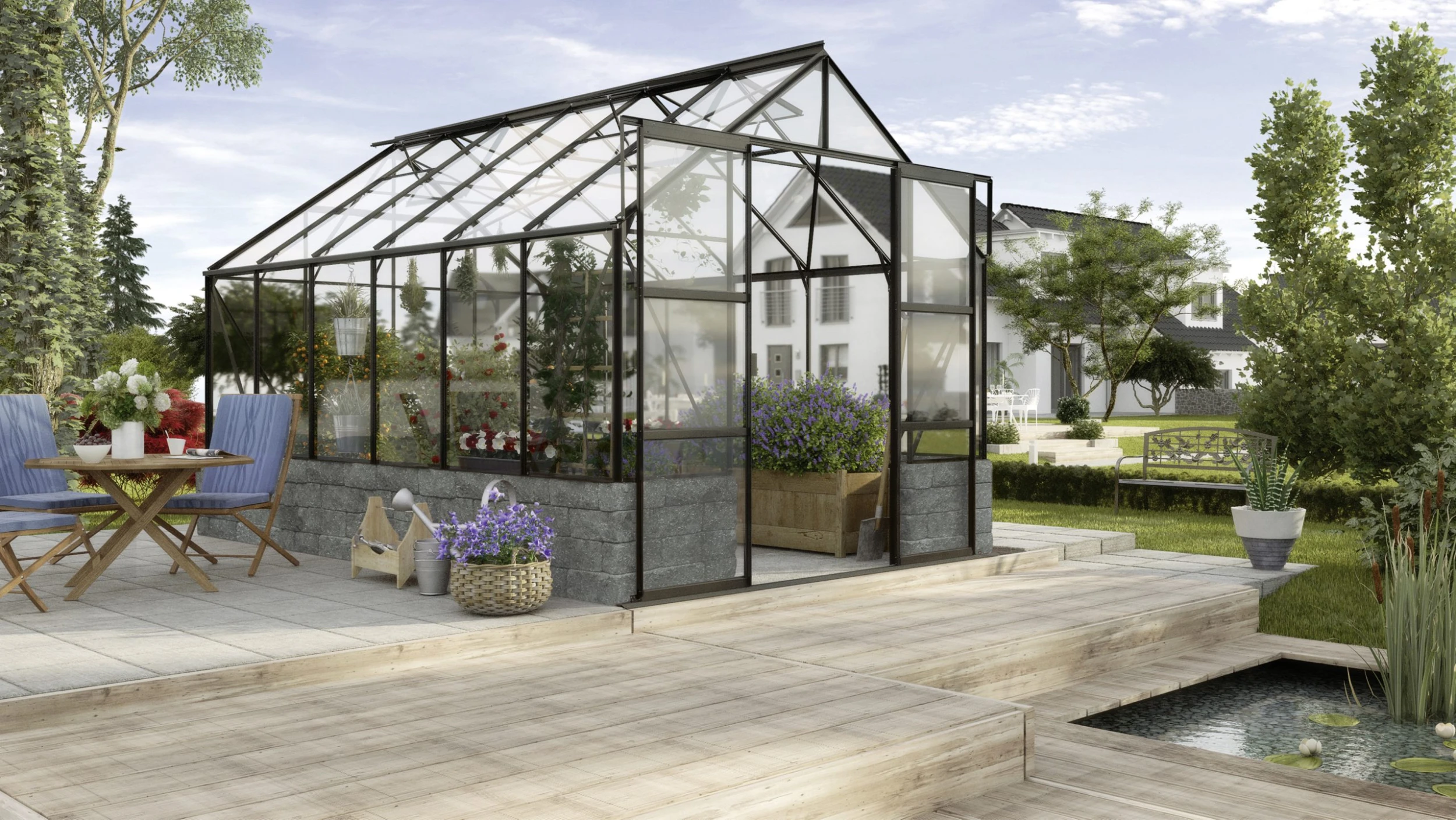 So wohnlich kann es im Grünen sein: Auf einem soliden Sockel stehend wird Ihr Gewächshaus schnell zum zweiten Zuhause und bringt dabei ein wenig englischen Stil in Ihren Garten. Das Cassandra hebt sich durch einen gemauerten Sockel vom klassischen, vollverglasten Gewächshaus ab: Der diskrete Sichtschutz, das freundliche Klima und die solide Gesamterscheinung verleihen dem Gewächshaus eine hohe Wohnlichkeit für viele gemütliche Stunden im eigenen Grün. Der Sockel kann nach eigenen Wünschen gestaltet werden. Das Set besteht aus dem Gewächshaus sowie den TÜV zertifizierten, aus Beton gegossenen Werksteinen für den Sockelbausatz. Die Steine bilden ein wertiges Mauerbild und haben zudem eine sehr hohe Farbbeständigkeit.