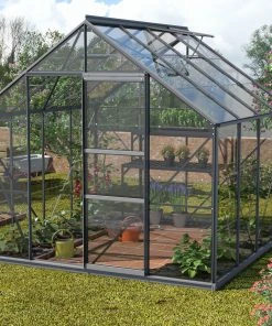 Solides Gärtnern nach eigenem Geschmack: Höhe und Breite bieten Pflanzen im Vergleich zu den Einsteigermodellen noch mehr Platz zum Wachsen und Gedeihen. Eine breite Auswahl an Ausstattungsmerkmalen ermöglicht die individuelle Gestaltung. An sonnigen, heißen Tagen sollte das Glas abschattiert werden, um die Pflanzen vor Verbrennungen zu schützen. Das Sicherheitsglas bricht im Gegensatz zum häufig in anderen Gewächshäusern verwendeten Blankglas nicht scharfkantig und sorgt somit für mehr Sicherheit. Das Modell hat ein kittloses Verglasungssystem mit rostfreien Glasfederklammern und eine leichtgängige, kugelgelagerte Schiebetür mit einer Breite von 60 cm und einer Höhe von 175 cm. Im Lieferumfang enthalten: Regenrinnen