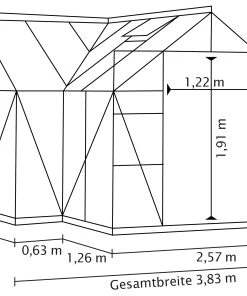 Extravagante Form und Vollverglasung machen das Sirona zu einem besonderen Ort mit viel Flair, Licht und Ausstrahlungskraft. Dieses Gewächshaus im Stil der barocken Orangerie besteht aus korrosions- und witterungsbeständigen Aluminiumprofilen und ist vollverglast mit ca. 3 mm starkem Sicherheitsglas, kristallklar (ESG). Die Grundfläche beträgt ca. 13 m². Es ist erhältlich in drei Farbvarianten: in Aluminium eloxiert, Smaragd oder Schwarz pulverbeschichtet. Das Gewächshaus wird zusammen mit einem ca. 6 cm hohen Stahlfundamentrahmen geliefert. Das Modell hat eine leichtgängige, kugelgelagerte Doppelschiebetür mit einer Breite von 122 cm und einer Höhe von 191 cm. Das Sirona ist serienmäßig mit vier Dachfenstern, Regenrinnen und drei Regenfallrohren (L 1,50 m, Ø 32 mm) ausgestattet. Somit ist für eine optimale Belüftung, einwandfreies Abfließen sowie Sammeln von Regenwasser gesorgt. Außergewöhnlich sind außerdem die Höhen von Traufe (160 cm) und First (254 cm). Diese Orangerie kann mit weiteren Doppelschiebetüren an den Giebelseiten rechts oder links ausgestattet werden. Zusätzlich können Sie das Gewächshaus mit einer Firstkrone verschönern, die gleichzeitig z.B. auch als Taubenabwehr dient.