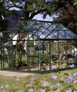 Freiraum zur Entfaltung: Hochwachsende Pflanzen wie auch große Gärtner haben an dem Uranus viel Freude, weil genug Platz für beide da ist. Ein Traum für alle Pflanzenliebhaber! Das Uranus ist ein Modell für den fortgeschrittenen Gärtner. Mit seiner außergewöhnlichen Firsthöhe von 246 cm und der Traufenhöhe von 151 cm bietet das Uranus auch hohen Pflanzen viel Raum. An sonnigen, heißen Tagen sollte das Glas abschattiert werden, um die Pflanzen vor Verbrennungen zu schützen. Sicherheitsglas bricht nicht scharfkantig und sorgt somit für mehr Sicherheit im Vergleich zu Blankglas. Das Modell hat ein kittloses Verglasungssystem mit rostfreien Glasfederklammern und eine leichtgängige, kugelgelagerte Doppelschiebetür mit einer Breite von 122 cm und einer Höhe von 191 cm.