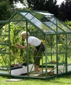 Venus ist die beste erste Wahl: Unter dem Dach unseres beliebten Modells machen sich selbst Einsteiger mit wenig Aufwand viel Freude. Auch die Regenrinnen gehören zur Standardausstattung. Das Modell Venus hat ein kittloses Verglasungssystem mit rostfreien Glasfederklammern und eine lichtgängige, kugelgelagerte Schiebetür mit einer Breite von 61 cm und einer Höhe von 161 cm. An sonnigen, heißen Tagen sollte das Glas abschattiert werden, um die Pflanzen vor Verbrennungen zu schützen. Für den ebenerdigen und rechtwinkligen Aufbau des Gewächshauses ist ein Fundamentrahmen (H 12,5 cm) aus verzinktem und farbbeschichtetem Stahlblech besonders hilfreich.